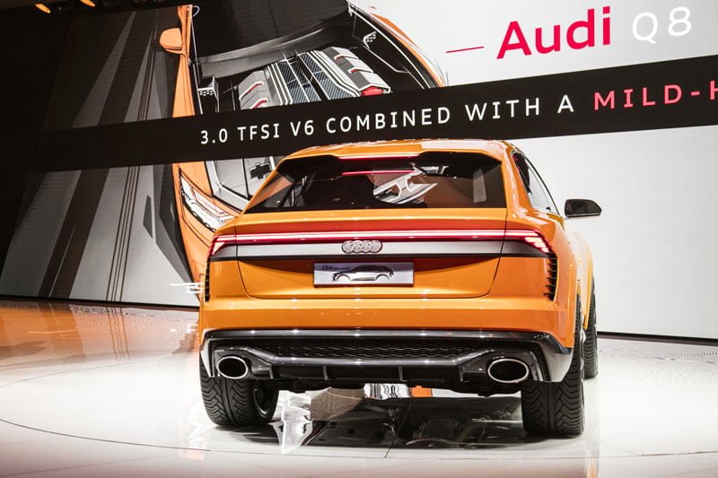 Konsep Q8 ditampilkan pertama kali di North American International Auto Show (NAIAS) 2017 berteknologi plug-in hybrid dengan tenaga 330 kW (443 hp) dan bertorsi 700 Nm secara sistem.