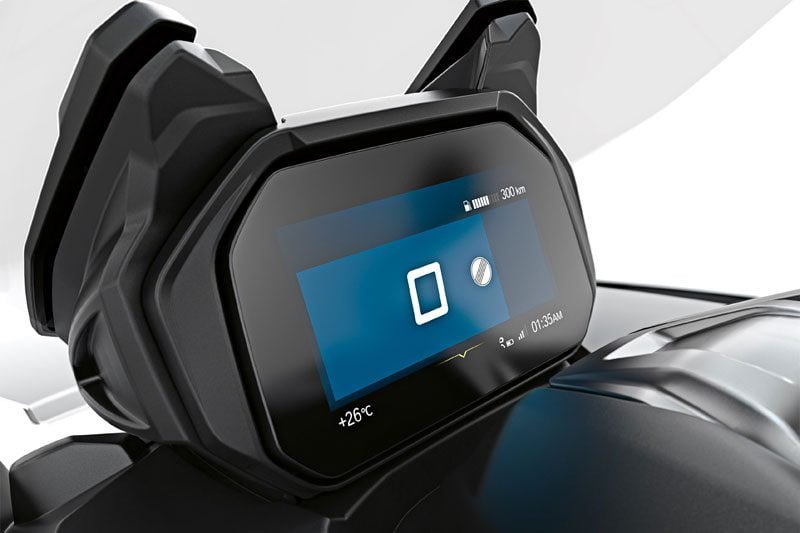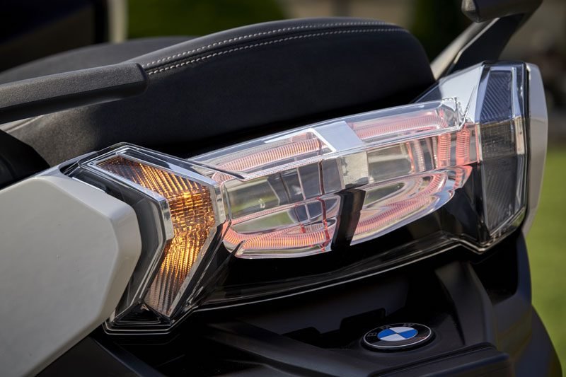 Bagian depan C 400 GT diperkuat oleh hadirnya twin headlight LED dan LED daytime running lights (opsional), serta windscreen.