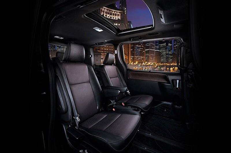 Jok-jok baris kedua Voxy didesain dengan model captain seat berbahan kulit. Twin moonroof, cruise control, sun shade serta AC otomatis depan dan belakang, serta Eco Mode hadir.