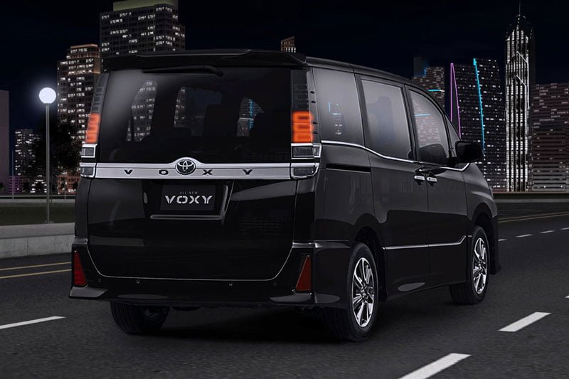 Toyota Voxy memakai roda alloy 16-inch two-tone color. Bagian samping mobil dihiasi oleh Elegant Aero Package.