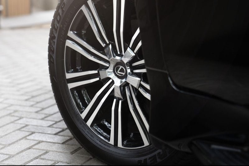 Di bagian depan terdapat spindle grille sport yang di desain oleh para Takumi Lexus (Lexus Craftsman). Bumper depan dan belakang dilengkapi dengan diffuser untuk meningkatkan aerodinamika berkendara. Aura elegan semakin terllihat dengan hadirnya roda dual-tone 21 inci dan kaca spion dengan cover berwarna hitam serta sentuhan aksen chrome. SUV ini pun menghadirkan lampu 3-LED Headlamps serta L-Shaped Daytime Running Lights.
