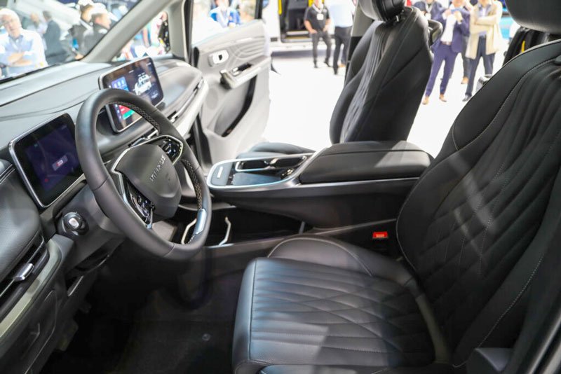 Dua pintu penumpang samping menganut sistem geser elektrik. Sementara pintu bagasinya bisa dibuka secara otomatis. MPV listrik premium ini pun menghadirkan power steering elektrik dan electronic parking brake (rem parkir elektronik).