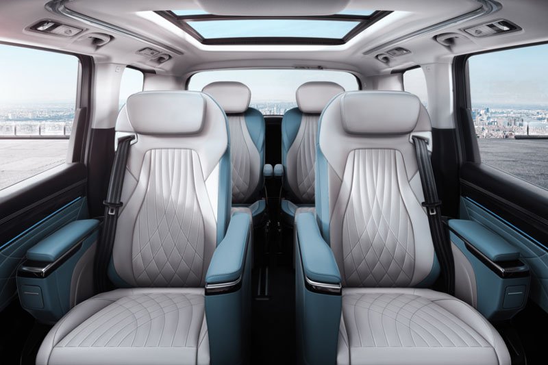 Maxus MIFA 9 menampilkan kursi-kursi individual bak singgasana raja di baris kedua. Sementara baris ketiga pun bisa dibuat jok-jok individual, jika pemiliknya ingin memberikan dua penumpang belakang tingkat kenyamanan yang sama dengan dua penumpang di depannya.