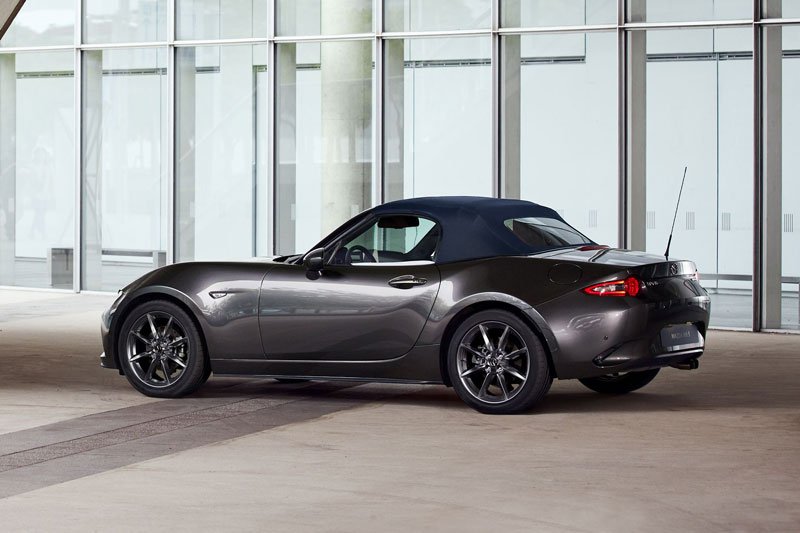 Di sisi desain, kedua versi body sports car ini menambahkan sentuhan akhir baru, yakni eksterior Platinum Quartz Metallic dan interior Terracotta. Yang pertama menyatukan warna putih sutra elegan dengan tembus pandang seperti kuarsa, sedangkan kabin kaya warna dilengkapi dengan kulit Nappa sangat halus. Bersama-sama, dua opsi desain menghasilkan getaran berjiwa bebas. Mazda juga telah menambahkan opsi soft-top Biru Tua, dan dengan itu berbagai kemungkinan kombinasi warna baru.