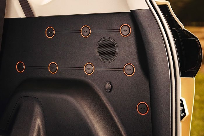 Dek belakang di bagian kanan dan kiri tersedia masing-masing 9 lubang serbaguna untuk pemasangan cantolan atau bar (batang melintang) atau sekat.