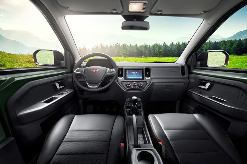 Untuk memaksimalkan kenyamanan, Wuling Zhengtu memenuhi standar kebisingan, getaran, dan kekerasan yang sama dengan mobil penumpang. Interiornya dilengkapi dengan layar infotainment berukuran 8 inci yang dapat dikontrol dengan sentuhan jari atau perintah suara untuk navigasi online dan menikmati hiburan.