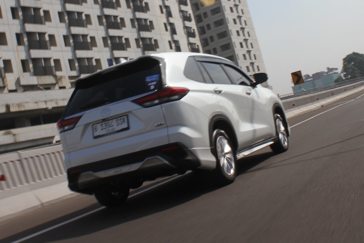 Toyota Kijang Innova Zenix Hybrid tipe Q versi Modellista ini sangat berbeda dengan versi G. Berkat jarak pijak lebih lebar 10 mm membuat mobil lebih jejak ke permukaan aspal. Melaju kecepatan tinggi juga tetap stabil dan redamannya tak begitu mengiterupsi kabin.